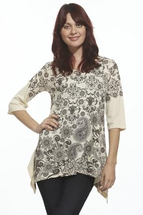 Curve Appeal sweater knit V-neck top in deep tones and engineered print. The asymmetrical flared hem flatters your figure and adds a sophisticated twist to an already impressive fashion top.