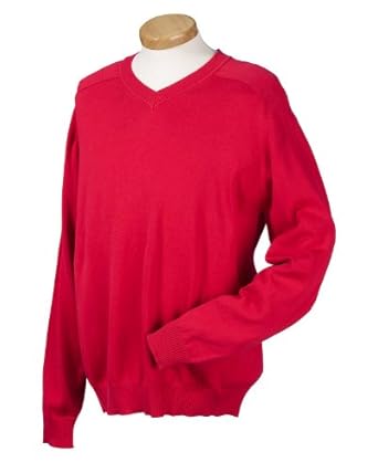 Devon ; Jones Men's V-Neck Sweater: 100% airspun cotton, 12 gauge; lighter weight for easy drape; holds shape and resists wrinkles; quick drying; 2x2 rib at neck, sleeves and bottom opening; saddle seam front and back armholes.