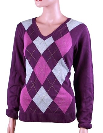 Izod Women's Long-Sleeve V-Neck Argyle Sweater