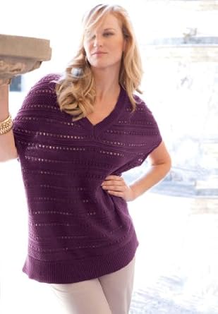 An open airy weave and short dolman sleeves lighten up the sweater for spring. Cotton. Machine wash. Imported. Ribbed neckline.Ribbed cuffs and hem finish. Perfect over a cami or tee. 30" long.