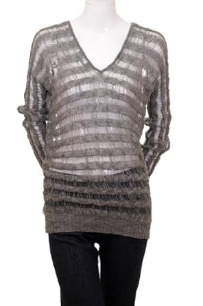 Lumiere V-Neck Long Sleeves Delicate Chain Crochet Knitted Sweater Olive