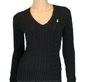 Polo Ralph Lauren Cable Knit V-neck Black SweaterItem Features:Embroidered pony on left chestRibbed collarCable KnitV-neck100% cottonMeasurements - taken With Sweater lying flatS - Underarm to Underarm 17.5"; Length- Shoulder to Hem: 23"M - Underarm to Underarm 18.5"; Length- Shoulder to Hem: 24"L - Underarm to Underarm 19.5"; Length- Shoulder to Hem: 25"XL - Underarm to Underarm 21.5"; Length- Shoulder to Hem: 27"