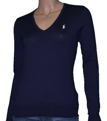Polo Ralph Lauren Women's V-Neck Pima Cotton Sweater NavyFeatures;Long SleeveV-NeckPolo Pony On Left ChestColor- NavyFabric- 100% Pima CottonMeasurements - taken With Sweater lying flatS - Underarm to Underarm 17"; Length- Shoulder to Hem: 24"M - Underarm to Underarm 18"; Length- Shoulder to Hem: 25"L - Underarm to Underarm 19"; Length- Shoulder to Hem: 26"XL - Underarm to Underarm 20"; Length- Shoulder to Hem: 27"