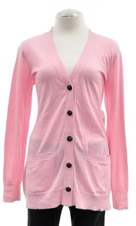 This pink cardigan sweater by Ralph Lauren features 100% cotton, V-neck , 2 bucket pocket, button front and long sleeve.