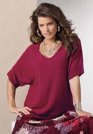 Feels as soft as cashmere! Plus size pullover with dolman sleeves and open neck. Acrylic knit. Machine wash. Imported. By Denim 24/7Rib trim at cuffs and bottom hem About 28' from shoulders to hem Plus size sweaters, tops, shirts - v-neck wedge sweater by denim 24/7, sizes S to 4X