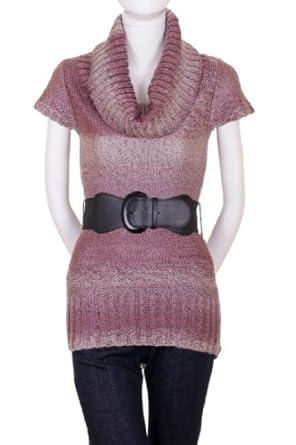 Wanna V. Ombre Cowl Neck Short Sleeve Belted Tunic Long Sweater Lavender