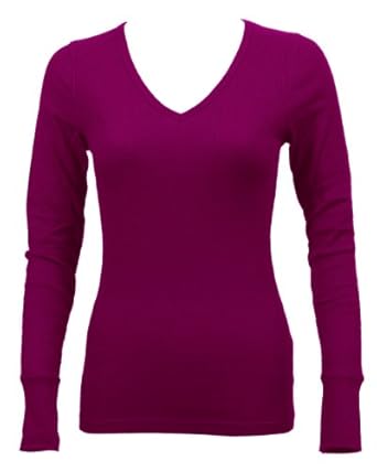 Ladies Magenta Long Sleeve Thermal Top V-Neck