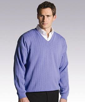 Needle out Stitch V-Neck Sweater. Shown in Color Iris. Also Available in Black and Natural. Elasticity in the cuffs and waist for shape retention. By Edwards Gargments. Questions? 1-888-936-7889