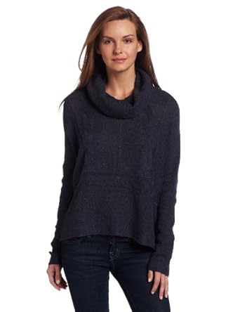 Multi stitch cowl neck cable sweater in a dark blue melange