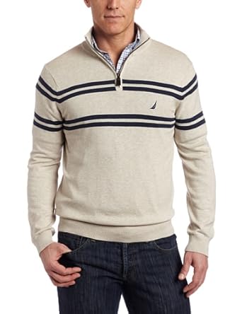 Nautica Men's 1/4 Zip Engineered Striped Sweater